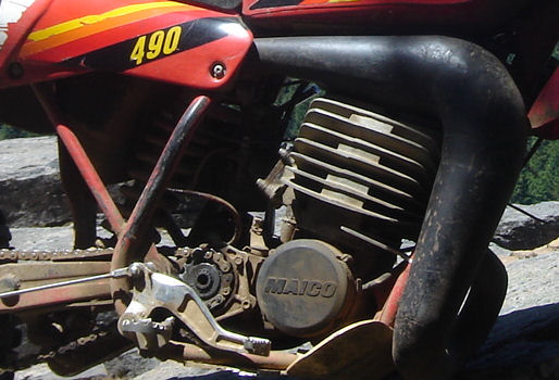 Several other minor changes also occurred during this time. In 1984 the 4 speed Spider was dropped in favor of a 5 speed MX version with new gear ratios. The long standing tradition of Maico using a double sealed output shaft bearing was also replaced with an unsealed bearing and output shaft seal (ala Honda). The primary drive ratio was raised in 1985 as well as the engine to frame bolt pattern which remains the same today.