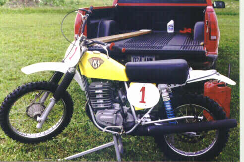 Thanks for offering to put the pictures of my Maico on your web site. It is an honor to have my pride and joy on the one and only Maico Madness web page. I bought this 1974 Maico 450 when I was 15 years old and raced it in the Open class for about three years. In 1978 I retired it to unfortunately sit in the back of my garage for the next twenty years. Since I had been out of racing for quite a while, I didn't know how these bikes have gone up in value. When I found out I decided to put some bucks into it and get it back to as near to stock as I could. I could never sell this bike, it is too dear to my heart. I even tell my daughter that it has more seniority than she does. :-)