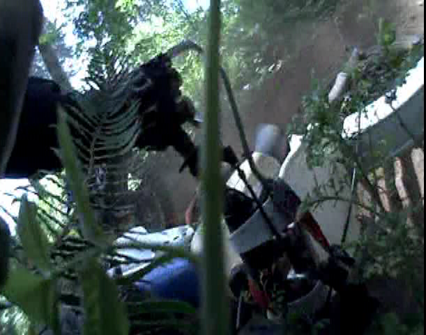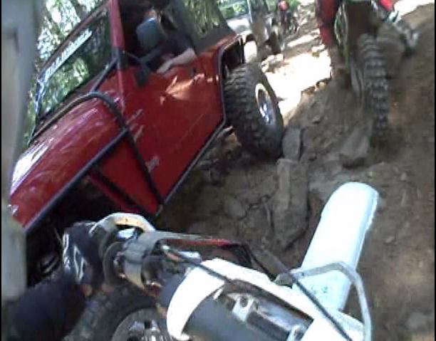 On my way again going up Mark's trail but not lead foot to attempt to save some gas I was greeted by a group of riders comming down the opposite direction. Unfortunately, I didn't know at the time but my back axle had started to come loose and I had lost my back brakes! I encountered the riders on the turn and I was taking the outside loop and without being able to change direction quickly or lock up my back brakes I leaned to the side and hit my front brakes lightly. This caused me to lay the bike down on the right side but since I was not going that fast and I was able to slow a little bit it was quite easy. The riders were not part of the poker run and either ignored the arrows or did not see them pointing the direction of the race.